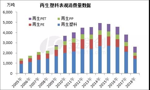 再回到此次標準所涉及的產品中,該類產品主要是常見的再生通用及工程塑料。從其供應體量與從業群體數量來看的話,關注度高的當屬再生PE、再生PP、再生PET。從上圖中可以看出,雖然近幾年再生塑料表觀消費量增速下滑,但其中再生PE、再生PP、再生PET在行業中的占比仍維持在40%-60%,屬于再生塑料行業的主要供應來源。